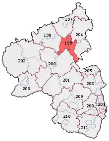 Koblenz is an electoral constituency (German: Wahlkreis) represented in the Bundestag. It elects one member via first-past-the-post voting. Under the current constituency numbering system, it is designated as constituency 199. It is located in northern Rhineland-Palatinate, comprising the city of Koblenz, the eastern part of the Mayen-Koblenz district, and the western part of the Rhein-Lahn-Kreis district.[1]