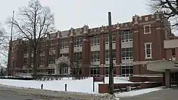 The earliest Kokomo High School found in records was in existence from about 1872 to 1916. The construction of the original Kokomo High School started in 1870 on the corner of Armstrong and Taylor with the first class commencing in 1872 according to a newspaper of that time.[3] In 1898 the original high school burned down and a second building was built on the corner of Market and Sycamore. In 1914 the high school was again destroyed by fire.[4] The third campus of Kokomo High School, first known as Howard County's Central School Building, was dedicated on October 19, 1917.[5] Located at 303 East Superior Street, this building now houses Central Middle International School.[6]