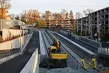 Meanwhile, it became evident for the county that they had severely underestimated the conversion costs, which by 2009 were estimated at 2.5 billion krone.[10] In addition to a general increase in construction costs, a major calculation error had been carried out based on estimates for a light rail, rather than a rapid transit.[12] At the time of closing the estimates called for completion in 2011.[13] An audit in 2010 concluded that the planning had been based on lack of reviews and risk management, with best-case estimates being used instead of properly risk-adjusted ones.[10] Bærum Municipal Council rejected a proposition in 2010 to build additional housing in the vicinity of the metro stations.[14]
