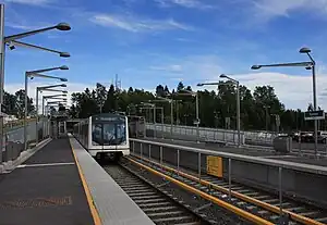 The Kolsås Line (Norwegian: Kolsåsbanen) is a 12.1-kilometer (7.5 mi) line of the Oslo Metro. It branches off from the Røa Line at Smestad Station and runs through western Oslo and Bærum to Kolsås Station. It serves the neighborhoods of Ullernåsen, Øraker, Jar, Bekkestua, Haslum, Gjettum and Kolsås. It is served by Line 3 of the metro at a 15-minute headway. The section from Jar to Bekkestua is built as a dual system with overhead wires, allowing Line 13 of the Oslo Tramway to continue from the Lilleaker Line to Bekkestua every ten minutes.