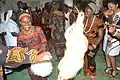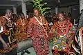 Njangwain: A performance mostly done by women, the Njanwain is a very important performance that stresses the importance of oral tradition within the Kom culture. The songs that are sung during the performance are memorized and passed on to the audience. The songs are very symbolic and express the lifetime of the African and is reflective of the human condition. This performance is done at marriages, birth celebrations, and other important events, like the annual Kom festivals.