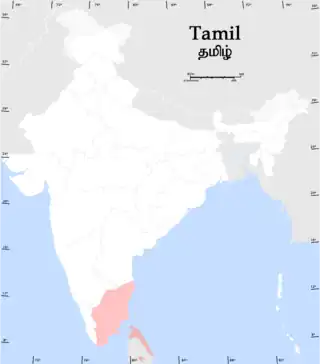 ![]() Distribution of native Tamil speakers in India and Sri Lanka | |