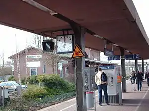 Korschenbroich station is a through station in the town of Korschenbroich in the German state of North Rhine-Westphalia. The station was opened between 1868 and 1880[5] on the Mönchengladbach–Düsseldorf railway opened between Mönchengladbach and Neuss by the Aachen-Düsseldorf-Ruhrort Railway Company on 16 December 1852.[6] It has two platform tracks and it is classified by Deutsche Bahn as a category 6 station.[1]