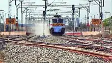 CRS rake skipping KRLA station, in return from Morthad, on its first day of electrified route