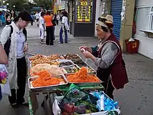 Many of the dishes are adaptations of Korean dishes that use ingredients that Koryo-saram had access to.[2][3] For example, while pork is popular in Korea, Koryo-saram cuisine in Uzbekistan lacks it since it's not widely available as a result of Islamic dietary restrictions on the consumption of pork.[3] Seafood is also popular in Korea, but inland Koryo-saram do not consume it.[3] The cuisine was also adjusted to suit the tastes of local non-Korean customers, notably by reducing the amount of pepper used.[2]