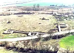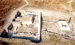 Recent excavations by Veliko Tarnovo University “St. Cyril and St. Methodius" have revealed a huge Roman building from the 4th century AD within the walls which appears to have been a horreum (i.e. a granary).[1] It measured over 60m x 25m, though it has not been fully exposed. It had a massive double door of 2.4m width. The walls of the building are 1.3m wide reinforced with external buttresses. It had two stories and a basement and was constructed with opus mixtum. The granary was plundered and set on fire around 378 AD probably by the Goths.