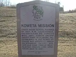 Koweta Mission Site is a site near Coweta, Oklahoma, and listed on the National Register of Historic Places. The mission was started in 1843 by Presbyterian minister Robert Loughridge at Coweta, then the capital of the Creek Nation, Indian Territory. He named the mission "Koweta", after the Creek capital. The school operated until the American Civil War, when Loughridge and most missionaries left the territory.