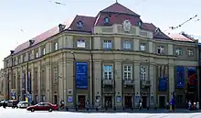 Soon after the return of Poland's sovereignty at the end of World War One, the company was reinstated, with an inaugural concert held on May 18, 1919, for the centennial anniversary of Stanisław Moniuszko's birthday, featuring 80 musicians. In 1931 a brand new concert hall (pictured) was built at Zwierzyniecka Street. The resident orchestra was active there until the Nazi-Soviet invasion of Poland, with the last performance held on May 21, 1939, under the direction of Bronisław Wolfstahl.[2][3]