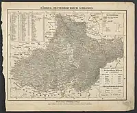 - 1 2 Gesetz vom 21. April 1854, RGBl. 104/1854: "Verordnung der Minister des Innern, der Justiz und der Finanzen vom 21. April 1854, betreffend die politische und gerichtliche Organisirung des Herzogthumes Ober- und Nieder-Schlesien". Reichs-Gesetz-Blatt für das Kaiserthum Österreich (in German). 1854-04-21. Retrieved 2023-07-05 – via ÖNB-ALEX - Historische Rechts- und Gesetztexte Online.