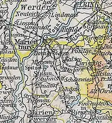 The area of the Stuhm district was annexed by Prussia during the First Partition of Poland in 1772 and belonged to the Marienburg district until 1818.[1] As part of a comprehensive district reform in the province of West Prussia, the new Stuhm district was formed on 1 April 1818 from the southern part of the Marienburg district. It comprised the towns of Christburg and Stuhm.[2]