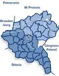 List of all communities with more than 400 inhabitants (as of 1910). The table shows the traditional Polish name, the name during the Prussian administration from 1815 to 1919 and the name during the Nazi occupation.