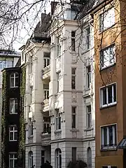 The Kreuzviertel with its Wilhelmine style buildings is a beloved residential quarter and has some of the highest real estate prices in Dortmund.[1] Nowadays the Kreuzviertel is a trendy district with pubs, restaurants, cafés, galleries and little shops.[2][3] Moreover, local efforts to beautify and invigorate the neighbourhood have reinforced a budding sense of community and artistic expression. The West park is the green lung of the Kreuzviertel and in the months between May and October a centre of the student urban life.