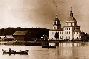The Nativity Church[10] was built at the end of the 18th century (approximately in 1790) in Krokhino settlement (Belozersky District of Vologda Oblast). The church was at the water's edge on the coast of Lake Beloye, at the origin of the Sheksna River.