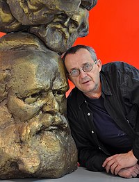 He was one of three sons of Irena and Jerzy Bednarski. Before the war, his parents lived in Lwów on Kulparkowska Street. Bednarski completed the XIV High School of General Gottwald in Warsaw. Later he graduated from the Academy of Fine Arts in Warsaw (1973-1978) in the sculpture department in the studios of Jerzy Jarnuszkiewicz and Oskar Nikolai Hansen. His diploma was entitled Portret Totalny Karola Marksa (Karol Marx's Total Portrait) and was defended on July 5, 1978[1]. He was later associated with the theater of Jerzy Grotowski[2][3], for which, during the period from 1976-1981, he designed posters. At that time, his first son was born and he worked at the quarry in Borów. Since 1986, he has been living in Rome, Italy. In the academic year 1996/97 and 2014-2017 he was a guest lecturer at the Academy of Fine Arts in Warsaw. In 2014, he defended his doctorate at the Academy of Fine Arts in Warsaw for his work W stronę rzeźby, czyli historia jednego dzieła bez końca (In the direction of sculpture, the story of endless work on one subject)[4]. In his early work, he criticized the communist propaganda in Portret totalny Karola Marksa (1978) (Total Portrait of Karl Marx) which is currently in the collection of the Museum of Independence in Warsaw or in Portret zbiorowy (1980) (Collective Portrait) which is currently part of the collection of the National Museum in Warsaw. He alluded to the political situation in Poland under the martial law in work such as Victoria-Victoria (1983) which is now part of the collection of the National Museum in Kraków. One of the recurring motifs in his oeuvre is Moby-Dick; its 1987 installation is currently in the ms2 collection of the Art Museum in Łódź[5]. Bednarski acted in several movies such as Noc poślubna w biały dzień (1982) (The Wedding Night During the Daylight), Schodami w górę, schodami w dół (1988) (Walking the Steps Up and Steps Down) and he played himself in My Italy (2017). He is married to Marina Fabbri[6] with whom he has a son, Federico. From a previous marriage with Barbara Kiszakiewicz, he has a son, Jakub.