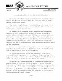- ↑ "Scientists from other nations work with hail experiment". University Corporation for Atmospheric Research. 1972-06-21. Archived from the original on 2023-12-12.