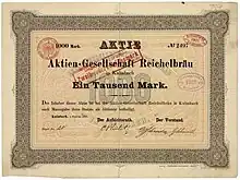 The Kulmbach Brewery Corporation (German: Kulmbacher Brauerei AG) was founded in 1895 under the name Reichelbräu in Kulmbach, a city in Upper Franconia, Bavaria, Germany.