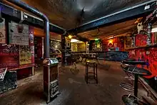 From international alternative and subcultural concerts to readings, film screenings and political talks, KuZeB's cultural programme is diverse. Two stages with bars, a cinema, a hackerspace, a freeshop, an infoshop, sewing, printing and painting studios, a wood and metal workshop, a multi-purpose hall with a half-pipe and fitness area, a rehearsal room for bands, a large garden and several storage rooms are now part of the autonomous centre where people can let off steam or engage in various activities.[13]