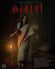 Kumari is a 2022 Indian Malayalam-language mythological fantasy film written and directed by Nirmal Sahadev, featuring Aishwarya Lekshmi in title role. It also features Shine Tom Chacko and Surabhi Lakshmi in supporting roles.[1] The film is produced by Giju John, Nirmal Sahadev, Sreejith Sarang and Jakes Bejoy under the banner The Fresh Lime Sodas. Abraham Joseph is the cinematographer of the film, while Jakes Bejoy composed the songs. Kumari is co-produced by Aishwarya Lekshmi, Priyanka Joseph and Mridhula Pinapala[2][3]