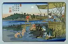Keisai Eisen's print of Kuragano-shuku, part of The Sixty-nine Stations of the Kiso Kaidō series