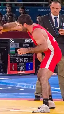 Kurban Kurbanov (Russian: Курбан Курбанов; born 21 March 1985 in Makhachkala, Dagestan) is an Uzbek freestyle wrestler from Russia. He competed at the 2008 and 2012 Summer Olympics in the 96 kg category and finished in seventh and fifth place, respectively.[1] He was the silver medalist at the 2010 Asian Games.[2][3][4] He won the 2011 Asian Freestyle Wrestling Championship.[5] He trains in Gamid Gamidov Wrestling club.