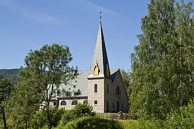 Kviteseid Church (Norwegian: Kviteseid kyrkje) is a parish church of the Church of Norway in Kviteseid Municipality in Vestfold og Telemark county, Norway. It is located in the village of Kviteseid. It is the main church for the Kviteseid parish which is part of the Øvre Telemark prosti (deanery) in the Diocese of Agder og Telemark. The brown, stone church was built in a long church design in 1915 using plans drawn up by the architect Haldor Larsen Børve. The church seats about 320 people.[1][2][3][4]