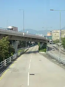 The Kwun Tong Bypass (also spelt Kwun Tong By-pass) is an elevated expressway between Lam Tin and Kowloon Bay in Kwun Tong District, Kowloon East, Hong Kong, with three lanes in each direction and a posted speed limit of 70–80 kilometres per hour (43–50 mph). It is part of Route 2 and has links to Route 5 and Route 7. It bypasses the industrial township of Kwun Tong and passes next to the boundary of the Kai Tak Airport.