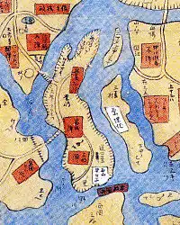 This is the name for the section from the Funatsubashi (bridge) to Tempōzan, Osaka Bay; the Japanese name is Aji-gawa (安治川).