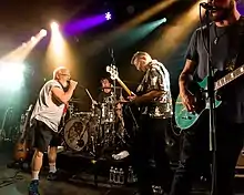 Kyle Gass Band (KGB) is an American rock band formed in Los Angeles, California in 2011. Fronted by Tenacious D lead guitarist Kyle Gass and vocalist and guitarist Mike Bray. The backing band consists of electric guitarist John Konesky (also of Tenacious D), bassist Jason Keene, and drummer Tim Spier.[1] The band have released two albums, Kyle Gass Band (2013) and Thundering Herd (2016). The band also occasionally tours acoustically (without Keene and Spier) as The Kyle Gass Company.[2]