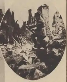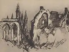 Leon Huygens sketching in the ruins of Nieuwpoort during the First World War.