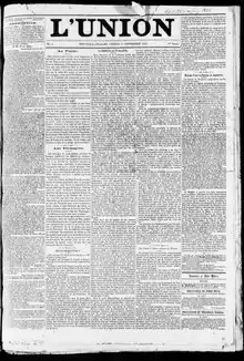 L'Union was the first African-American newspaper in the Southern United States.[lower-alpha 1] The newspaper was based in New Orleans, Louisiana, and was published from 1862 to 1864. Articles in L'Union were written in the French language, with the newspaper's primary readership being free people of color in the New Orleans area, especially Faubourg Marigny and Faubourg Tremé.[2]