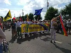 In the 2007 march, some participants were seen with a banner "Thank you Verhofstadt!", in reference to the fact that same-sex marriage in Belgium and other LGBT reforms were realised by the first two governments of Prime Minister Guy Verhofstadt (Open VLD), which respectively consisted of liberals, socialists and greens, and of liberals and socialists.