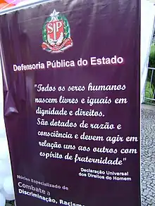 The São Paulo Law No. 10 948 went into effect on 5 November 2001, providing for penalties to be applied to the practice of discrimination on grounds of sexual orientation and other measures.[7][8][9]
