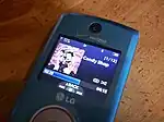 Here the LG Chocolate3 is shown playing music using the external screen.