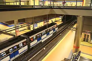 La Almudena [la almuˈðena] is a station on Line 2 of the Madrid Metro, located east of the Cementerio de la Almudena. It is located in fare Zone A.[1]