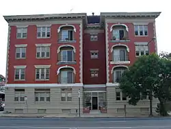 Built in 1910, this historic structure was designed in the Georgian Revival style. Part of the second wave of a housing boom in West Philadelphia that started with the completion of the Market Street Elevated line in 1907, this building was also one of the first large apartment buildings ever built in Philadelphia. It helped give the rising middle class better access to housing. Originally, this four-story building housed just twenty-six apartments, but as the neighborhood became less fashionable, the apartments were subdivided into a total of forty-nine units.[2]