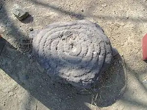 Next to Structure 2 are some petroglyphs. In this area are parts of the underground drainage system, made to collect and evacuate storm rain water. It was originally covered with stones. Its lay out follows the buildings arrangement.