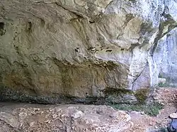 La Chaire a Calvin is a rock shelter near the village of Mouthiers-sur-Boëme in the Département of Charente, situated in the valley of the Gersac stream. The shelter is on a cliff which faces south east. The rock face of this rock-shelter has a sculpted frieze dated to the Magdalenian period; approximately 15000 years BP.