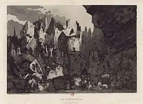 La Esmeralda is a grand opera in four acts composed by Louise Bertin. The libretto was written by Victor Hugo, who had adapted it from his 1831 novel Notre-Dame de Paris (The Hunchback of Notre Dame).[1] The opera premiered at the Théâtre de l'Académie Royale de Musique in Paris on 14 November 1836 with Cornélie Falcon in the title role. Despite the lavish production, the premiere was a failure, and La Esmeralda proved to be the last opera composed by Bertin, although she lived for another 40 years.