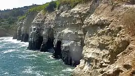 The La Jolla sea caves, or "The 7 caves of La Jolla",[31] are just north of the cove. The best known of these is "Sunny Jim Cave", a short walking distance from the Cove and from the local businesses that are situated up above the shoreline. The cave is accessible through The Cave Store, which charges a nominal fee to go down a staircase leading to the cave itself.[32]