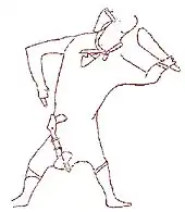 The etchings of the bodies in La Marche have distinct characteristics as well. Generally, the etchings are those of women. The bodies of the women were constructed in a diamond shape, with a small head, large abdomens suggesting obesity, and small feet. Men also were etched with large bodies, although this was not so prominent in the men as it was in the women. Bodies also are extremely useful in determining the gender of an etching, in that they portrayed the secondary sex characteristics.[6] In addition, many of the engravings show people wearing hats, robes, and boots. Although this does not coincide with the previously accepted view of prehistoric people, it may be because paintings depicting clothed humans were destroyed in the other caves while scientists were studying the walls.[6]