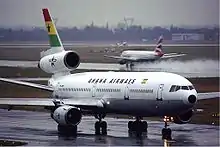 The DC-10 used as the restaurant was formerly owned and operated by Ghana Airways on routes between Ghana and both Europe and the United States.[1] Ghana Airways ordered a DC-10-30 in 1976, with it arriving on 24 February 1983. During July 1985, it was used to fly United Nations troops in and out of Beirut, Lebanon. In January the following year the plane was used under contract from Caribbean Airlines to fly passengers from Europe to the Caribbean twice weekly.[4]