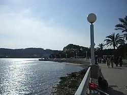 It is one of the most famous islands in Galicia due to its vocation as a spa, leisure and tourism centre: it has thermal baths, old soap and cosmetics factories, luxury hotels, a golf course,[9] a marina, a congress centre, the first casino in Spain,[10] tennis courts, padel courts, archery courts, swimming pools, housing estates, a shopping centre and other facilities.[11] However, the centre of the island still retains a dense pine forest. Thus, the island is divided into : 32 hectares of private housing estates (its southern part and the eastern and western flanks), 25 hectares of golf course for private use (its entire northern part) and 25 hectares of virgin pine forest (in the centre of the island).