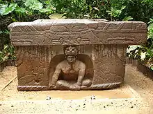 This layout has led researchers to propose that the platforms surrounding the plaza functioned as stages where ritual drama was enacted for viewers within the plaza.[16] These rituals were likely related to the "altars", monuments, and the stelae surrounding and within the plaza. These monuments, including Colossal Head 1 (Monument 1), were of such a large size and were placed in such a position that they could convey their messages to many viewers at once.