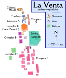 - ↑ The Stirling Acropolis is named in honor of Matthew Stirling, the archaeologist who first surveyed La Venta in the 1940s.