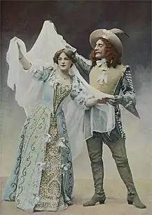 By the 1890s Lecocq's most successful days were behind him.[1] In the 1870s his successes had included Giroflé-Girofla and La fille de Madame Angot. He had written very popular operas in the early 1880s, but of his later comic pieces only Ninette (1896) ran for more than the 100 performances regarded as the criterion of success in Parisian theatres of the time.[2][3] After that, the most successful of his younger rivals, André Messager, wrote two highly successful pieces for the Théâtre des Bouffes-Parisiens, Les p'tites Michu (1897) and Véronique (1898), in collaboration with the librettists Albert Vanloo and Georges Duval. With the same librettists, Lecocq wrote his version of the Sleeping Beauty story for the same theatre. The cast included many popular performers including Jean Périer, Anne Tariol-Baugé, Maurice Lamy and Brunais. The new leading lady, Mlle. de Hally (sometimes billed as Dehelly, née Valentine Eugénie Stratsaert), a 23-year-old alumna of the Conservatoire de Paris, appeared in this production by arrangement with the Opéra-Comique, of which she was a regular company member.[4][5]
