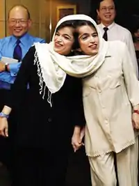![]() Ladan (left) and Laleh (right) Bijani in a press conference in June 2003, about one month before their deaths. | |