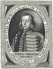 Count Ladislaus Esterházy de Galánta (31 December 1626 – 26 August 1652) was a Hungarian noble, son of Nikolaus, Count Esterházy, who served as Palatine of Hungary. He was a general in the Imperial Army and fought against the Ottoman Empire.