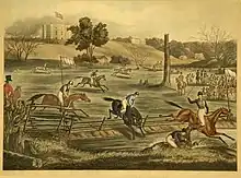 In 1841 through 1849, Lady Eveline joined Sir James Edward Alexander while he was being stationed in London, Ontario during his Canadian tour. During this time her husband was in the 14th Regiment of Foot and aide-de-camp to Sir Benjamin D'Urban and Sir William Rowan. While stationed during the Canadian tour, she created a sketch depicting her surroundings which was of the military steeplechase and was lithographed. This came to be one of her most known works, the first military steeplechase to occur North America in May 1843. It was titled Grand Military Steeple Chase.[7]