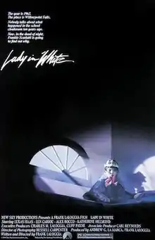 Lady in White is a 1988 American supernatural mystery film directed, produced, written and scored by Frank LaLoggia,[5] and starring Lukas Haas, Len Cariou, Alex Rocco, and Katherine Helmond. Set in 1962 upstate New York, it follows a schoolboy (Haas) who, after witnessing the ghost of a young girl, becomes embroiled in a mystery surrounding a series of brutal child murders.