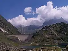 The creation of the Barbellino reservoir was possible thanks to the blockading of Serio river, after studying the geological characteristics of the area to fix both the dimension and shape.[4][5]
